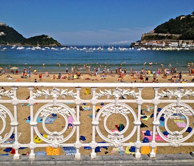 El entorno es simplemente espectacular: a un lado, la ciudad vibrante con su famoso Paseo de la Concha, ideal para caminar o andar en bicicleta, y al otro, las majestuosas montañas que enmarcan el paisaje. Además, la playa ofrece una vista impresionante del Monte Urgull y el Monte Igueldo, creando un escenario de postal que cautiva a todos los visitantes.